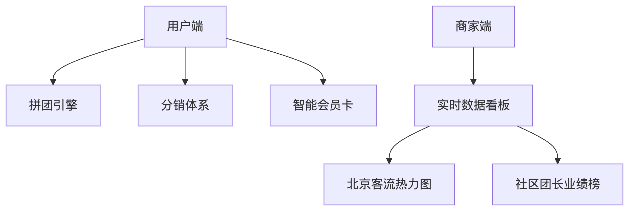 關(guān)鍵技術(shù)創(chuàng)新:LBS拼團(tuán)引擎;基于百度地圖API識(shí)別用戶所在社區(qū);自動(dòng)匹配最近的自提點(diǎn)/參團(tuán)商品