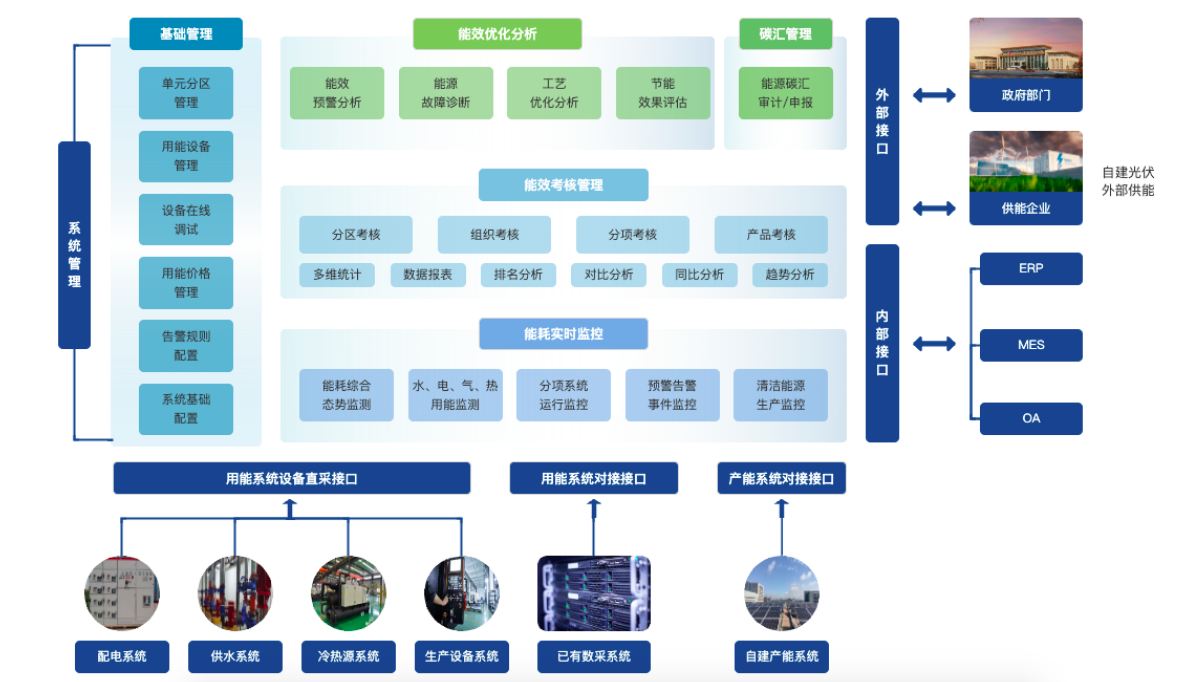 2、工作原理:通過傳感器和監(jiān)控設備對各種能源設備進行數(shù)據(jù)采集和監(jiān)控,包括溫度、壓力、流量等參數(shù)。這些數(shù)據(jù)被傳輸?shù)较到y(tǒng)的控制中心,經(jīng)過分析和處理后,系統(tǒng)根據(jù)預設的優(yōu)化算法和運行策略,自動或半自動地調(diào)整能源設備的運行狀態(tài),實現(xiàn)能源的合理分配和高效利用。